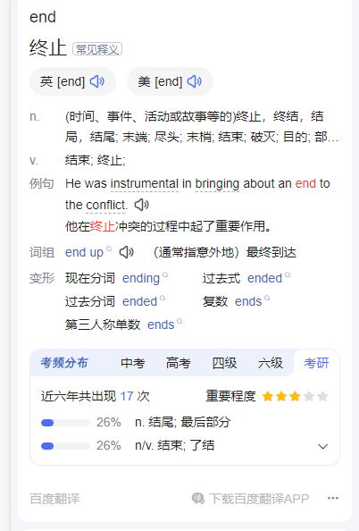 在百度查询单词时,发现百度可以显示这个单词在近些年考了多少次,例如