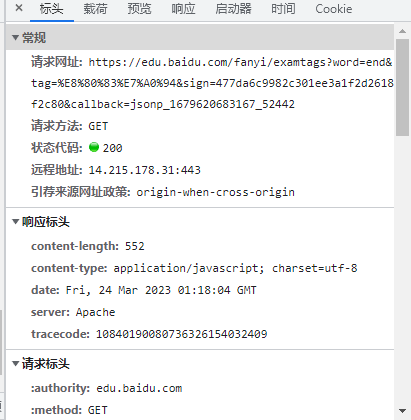 url = 'https://edu.baidu.com/fanyi/examtags?word=' + word +'&tag=考研&sign='+sign +'&callback=' + callback